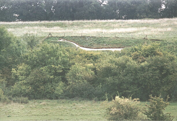View of the Marlborough white horse from the footpath from Preshute House to the Salisbury road.