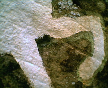 Detail of the horse on White Horse Rock, showing the older paintwork beneath.